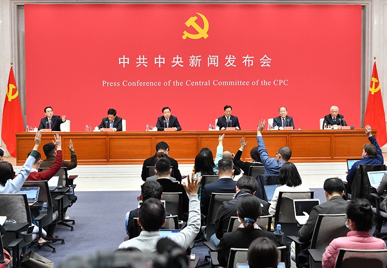 10月30日,中共中央在北京舉行新聞發(fā)布會,介紹黨的十九屆五中全會精神,并答記者問。 新華社記者 李鑫 攝