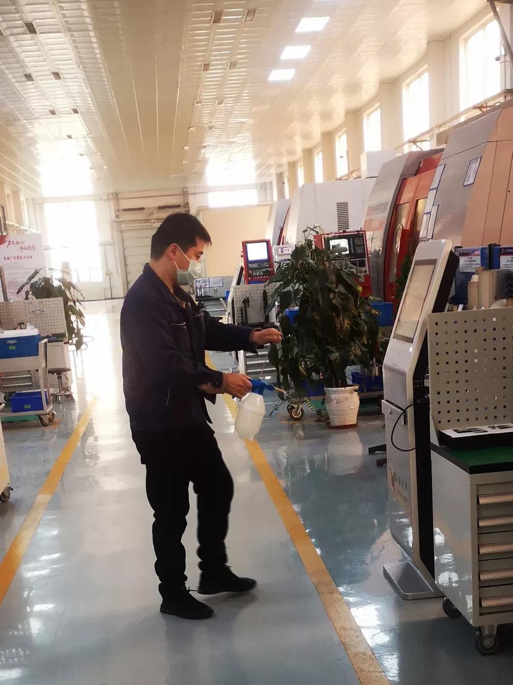 一機(jī)集團(tuán)對出入人員進(jìn)行體溫檢測;對各辦公場所、生產(chǎn)現(xiàn)場均利用消毒液進(jìn)行消毒。同時(shí)積極開展測溫儀、體溫計(jì)、消毒液、紫外線消毒燈、防護(hù)口罩等物資籌備,做好假期后生產(chǎn)啟動準(zhǔn)備。