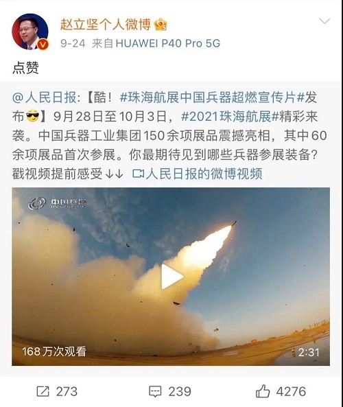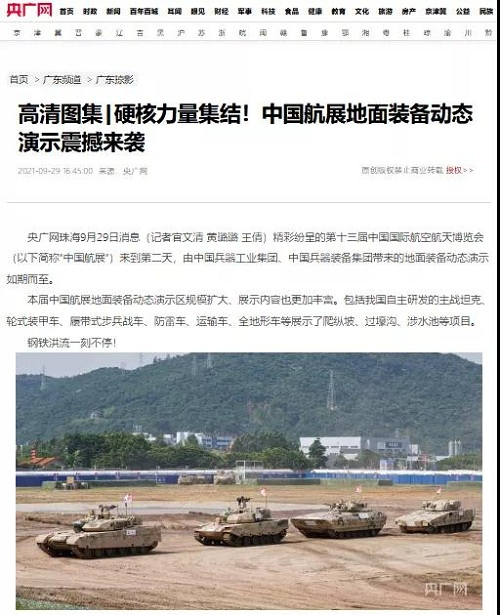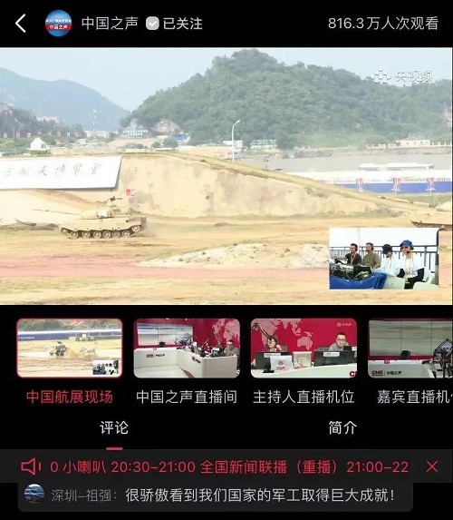 9月28日-10月3日,第十三屆中國國際航空航天博覽會在廣東珠海舉行,中國兵器工業(yè)集團有限公司作為主辦單位閃耀亮相,推出裝甲突擊、火力打擊、智能彈藥、防空反導、無人裝備、非傳統(tǒng)安全、軍工軍技合作等領域新產(chǎn)品及成體系成建制武器系統(tǒng)和解決方案,全方位展示我國陸軍外貿武器裝備的最高水平以及雄厚的科技創(chuàng)新、自主研發(fā)與先進制造能力,受到廣泛關注。 央視《新聞聯(lián)播》報道第十三屆中國航展,著重介紹了VT4主戰(zhàn)坦克,關注航展公眾日中國兵器館情況。9月28日下午央視《新聞直播間》航展特別節(jié)目《藍天盛會》邀請集團公司訪談嘉賓做客直播間對中國兵器館兵器工業(yè)集團展區(qū)等進行1小時直播;9月28日下午、10月2日下午分別對地面裝備動態(tài)表演進行兩場直播。央視《朝聞天下》、《新聞直播間》、《共同關注》、《天下財經(jīng)》、《軍事報道》、《正午國防軍事》、《軍武零距離》等相繼推出集團公司參展裝備的報道。 人民日報、新華社、中國日報、共青團中央、國資小新、騰訊軍事、鳳凰軍事、新浪軍事等新媒體發(fā)布的集團公司航展宣傳片等視頻作品燃爆全網(wǎng),閱讀量突破三千萬人次,得到外交部發(fā)言人趙立堅轉載點贊。集團公司微信、微博、抖音號、微信視頻號等新媒體宣傳片播放閱讀量超過400萬人次。同時,央視新聞、新華社、中國之聲、央視軍事、央視新媒體、解放軍報、共青團中央、國資小新、環(huán)球時報等多家媒體對集團公司靜、動態(tài)展區(qū)進行現(xiàn)場直播,在電視端、客戶端、微信視頻號、微博、B站、快手、抖音等平臺受到高度關注。著名軍事專家杜文龍、央視主持人顧國寧、央廣中國之聲主持人王藝等直播兵器館、動態(tài)表演區(qū)裝備。 《參考消息》、新華網(wǎng)、央廣網(wǎng)、中國日報、科技日報、解放軍報、人民網(wǎng)、中國新聞網(wǎng)、中國青年網(wǎng)、中國網(wǎng)、中工網(wǎng)、央視網(wǎng)、環(huán)球網(wǎng)、騰訊網(wǎng)、新浪網(wǎng)、鳳凰網(wǎng)、搜狐網(wǎng)、網(wǎng)易網(wǎng)、今日頭條等中央主流媒體和知名網(wǎng)絡媒體以及南方日報、廣東電視臺、北京電視臺、新京報、珠海傳媒集團、深圳衛(wèi)視等省市媒體對集團公司參展情況進行了圖片、文字、視頻報道。 航展期間,備受關注的中國兵器館,參觀的觀眾絡繹不絕。 |