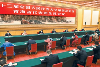 3月7日,中共中央總書記、國家主席、中央軍委主席習(xí)近平參加十三屆全國人大四次會議青海代表團(tuán)的審議。新華社記者 李濤攝