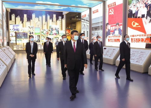 ■ 黨的歷史是最生動、最有說服力的教科書。我們黨的一百年,是矢志踐行初心使命的一百年,是篳路藍縷奠基立業(yè)的一百年,是創(chuàng)造輝煌開辟未來的一百年。回望過往的奮斗路,眺望前方的奮進路,必須把黨的歷史學習好、總結(jié)好,把黨的寶貴經(jīng)驗傳承好、發(fā)揚好,銘記奮斗歷程,擔當歷史使命,從黨的奮斗歷史中汲取前進力量。要教育引導廣大黨員、干部通過參觀學習,更加自覺地不忘初心、牢記使命,增強“四個意識”,堅定“四個自信”,始終在思想上政治上行動上同黨中央保持高度一致,堅定理想信念,學好用好黨的創(chuàng)新理論,賡續(xù)紅色血脈,發(fā)揚光榮傳統(tǒng),發(fā)揮先鋒模范作用,團結(jié)帶領(lǐng)全國各族人民,更好立足新發(fā)展階段、貫徹新發(fā)展理念、構(gòu)建新發(fā)展格局,全面做好改革發(fā)展穩(wěn)定各項工作,匯聚起全面建設(shè)社會主義現(xiàn)代化國家、實現(xiàn)中華民族偉大復(fù)興中國夢的磅礴力量
