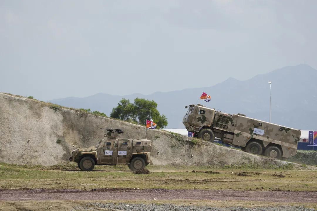 地面裝備動(dòng)態(tài)表演環(huán)節(jié),場(chǎng)地進(jìn)一步增大,由兵器工業(yè)集團(tuán)自主研發(fā)制造的主戰(zhàn)坦克、輪式裝甲車(chē)、履帶式步兵戰(zhàn)車(chē)、防雷車(chē)、輪式防護(hù)型步兵輸送車(chē)、運(yùn)輸車(chē)等將現(xiàn)場(chǎng)表演爬縱坡、過(guò)壕溝、涉水池、蛇形機(jī)動(dòng)等項(xiàng)目,展示高度的機(jī)動(dòng)靈活性和強(qiáng)大的越野能力,為廣大觀眾帶來(lái)耳目一新的視覺(jué)盛宴。