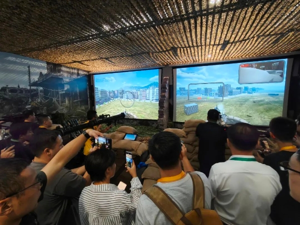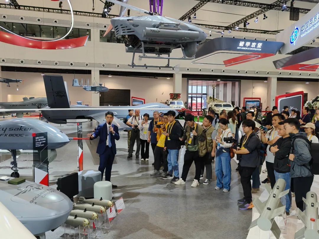 本屆航展,兵器工業(yè)集團(tuán)著重展示數(shù)智賦能軍貿(mào)合成旅作戰(zhàn)體系。“探館”現(xiàn)場(chǎng),新聞發(fā)言人向記者團(tuán)介紹了本屆航展集團(tuán)公司參展亮點(diǎn)、明星產(chǎn)品和技術(shù)發(fā)展成果,并對(duì)VT5-U輕型坦克、VU-T10無(wú)人平臺(tái)、SR5多管火箭炮、金雕CR500B無(wú)人直升機(jī)系統(tǒng)、指揮控制中心等參展裝備和技術(shù)作了重點(diǎn)介紹,媒體記者進(jìn)一步了解了裝備的性能和特點(diǎn)。在無(wú)人火力展區(qū),記者團(tuán)還走進(jìn)仿真訓(xùn)練體驗(yàn)區(qū),親身“使用”單兵武器,體驗(yàn)裝備性能。