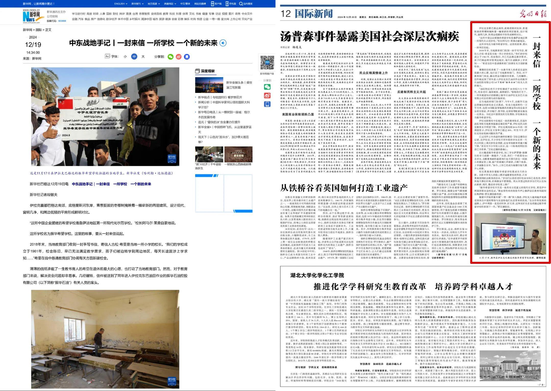 新華社、《光明日報》報道北方公司振華石油海外項目踐行社會責任:一封來信 一所學校 一個新的未來 |
