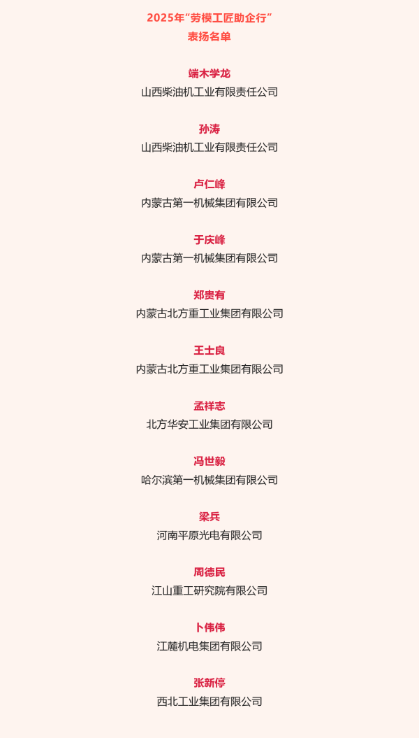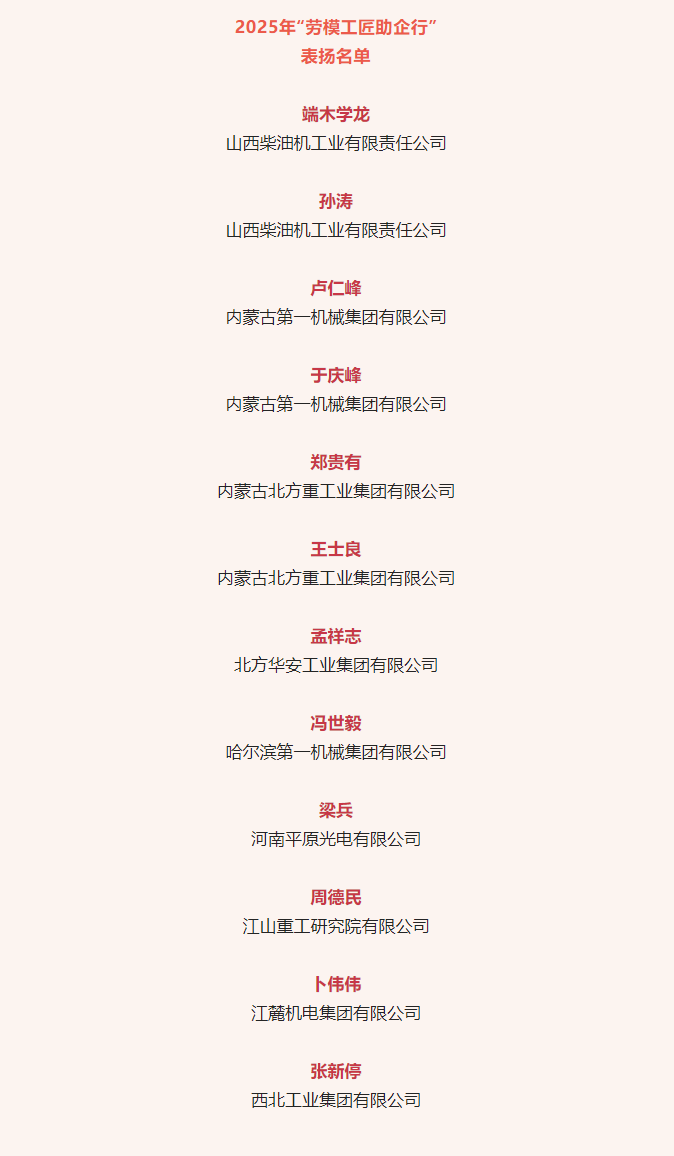 兵器工業(yè)集團(tuán)12名勞模工匠入選“勞模工匠助企行”表?yè)P(yáng)名單 |